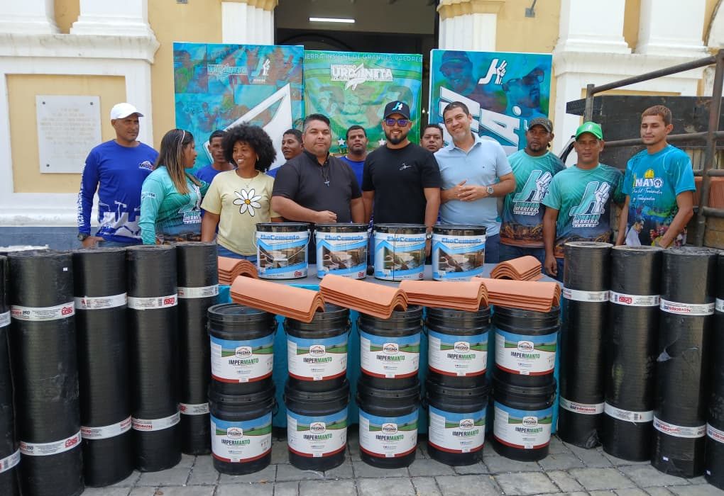 Entre el material entregado para cubrir los primeros 300 metros de techado de 934 metros que se esperan atender al finalizar dicha obra se encontraron: tejas, rollos asfálticos, pintura impermeabilizante y cemento plástico.